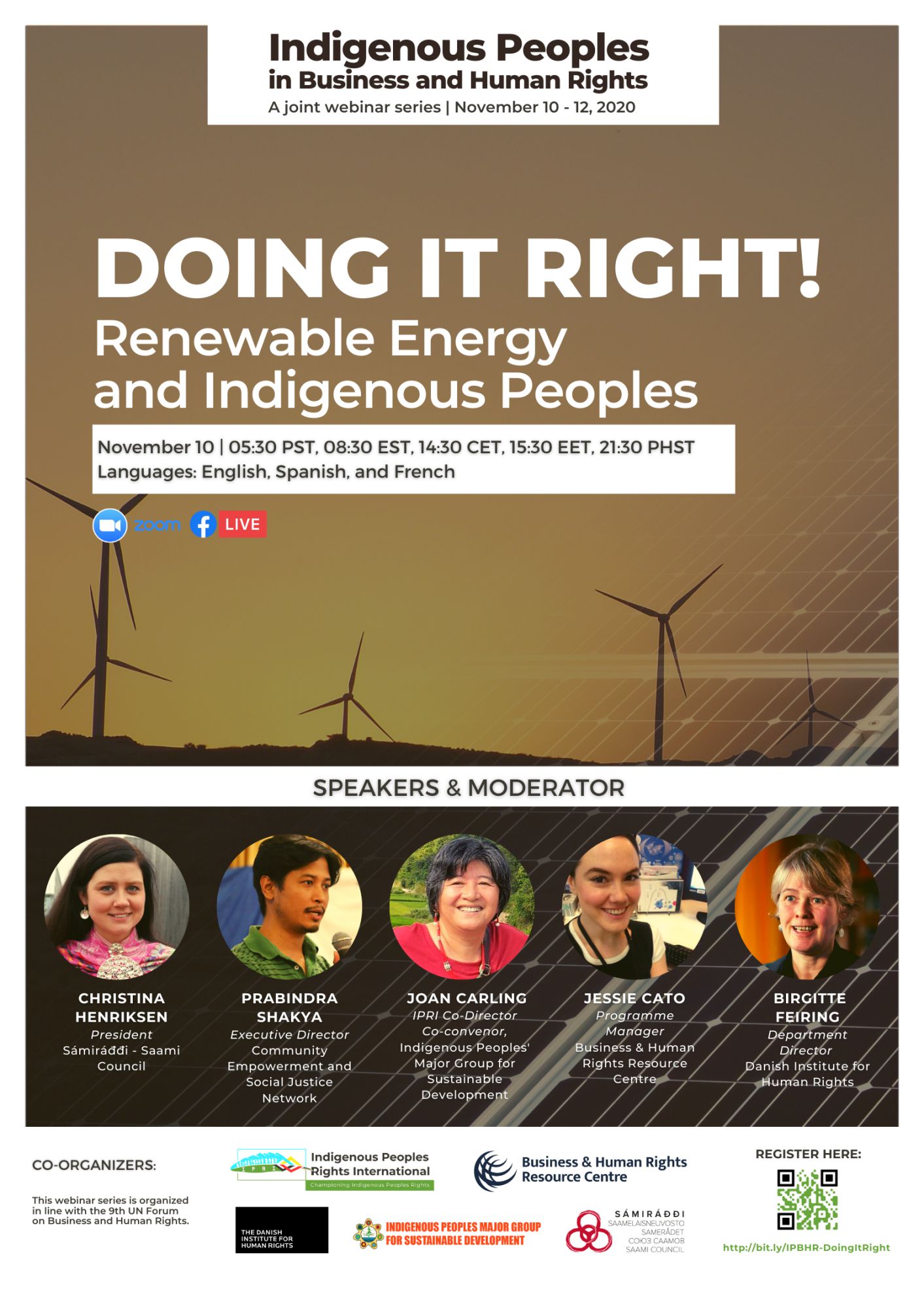 As the UN Forum on Business and Human Rights is taking place on November 16-18, 2020 to be a virtual meeting, IPRI and its partners wish to feature and draw attention to the state of affairs of renewable energy projects and indigenous peoples in relation to business and human rights. In particular, it will host a webinar to highlight the impacts of renewable energy development on the collective and individual rights of indigenous peoples, and the threats and repercussions facing indigenous peoples when they assert and defend their rights in these types of business projects. Complementing this year’s theme of prevention of human rights abuses, the session will include recommendations on how companies, governments, and other stakeholders can help avoid human rights harms stemming from renewable energy projects.