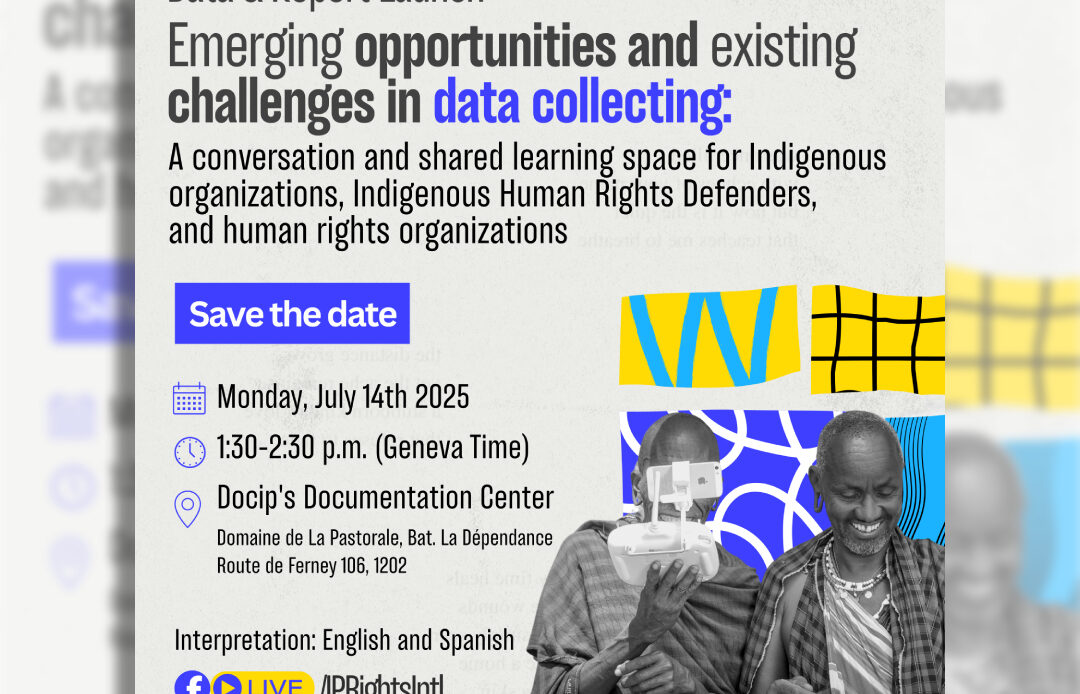 Event Details July 14, 2025 13:30 Geneva (Timezone) Overview of event Indigenous Peoples Rights International will host a side event at the 18th Session of EMRIP on July 14th from 13:30 – 14:30 pm to highlight the 2024 data trends report and present a summary report of the webinar from June 18th for the purpose of dissemination of understanding emerging opportunities and existing challenges. The event will include a brief presentation from IPRI’s Database and Documentation team on the reports and lead into a shared knowledge space that invites participants to share their own experiences in data and documentation. There will be 3 guiding questions that will be asked and space given for participants to share input. The responses will be recorded to further the knowledge capacity in the report.   The release of both IPRI 2024 data trends report and the summary report of webinar will inform attendees on the current cases that IPRI is supporting in both documenting and advocacy.  Hosting this event is critical to deepening the understanding of the realities on how other organizations and networks document criminalization and  human rights violation cases including; documenting, verifying, analysis, and dissemination and creating a space for networking and future collaboration. The event will include interpretation in English and Spanish. Format 13:30 Introduction To open the space up and introduction of IPRI Power Point   13:35 Brief of 2024 trends Sharing of 2024 data findings Power Point   13:45 Brief of Data conversation Sharing of Data webinar summary report Power Point & QR code   13:55 Q&A on findings     14:00-14:20 Shared Learning and Knowledge with 3 leading questions Explaining the purpose of question, asking consent for recording,   space for input from participants Recording the input, passing microphone, 14:25-14:30 Closing remarks What will happen next—where we will go from here? Why input helps us inform networking, capacity building, and collaboration