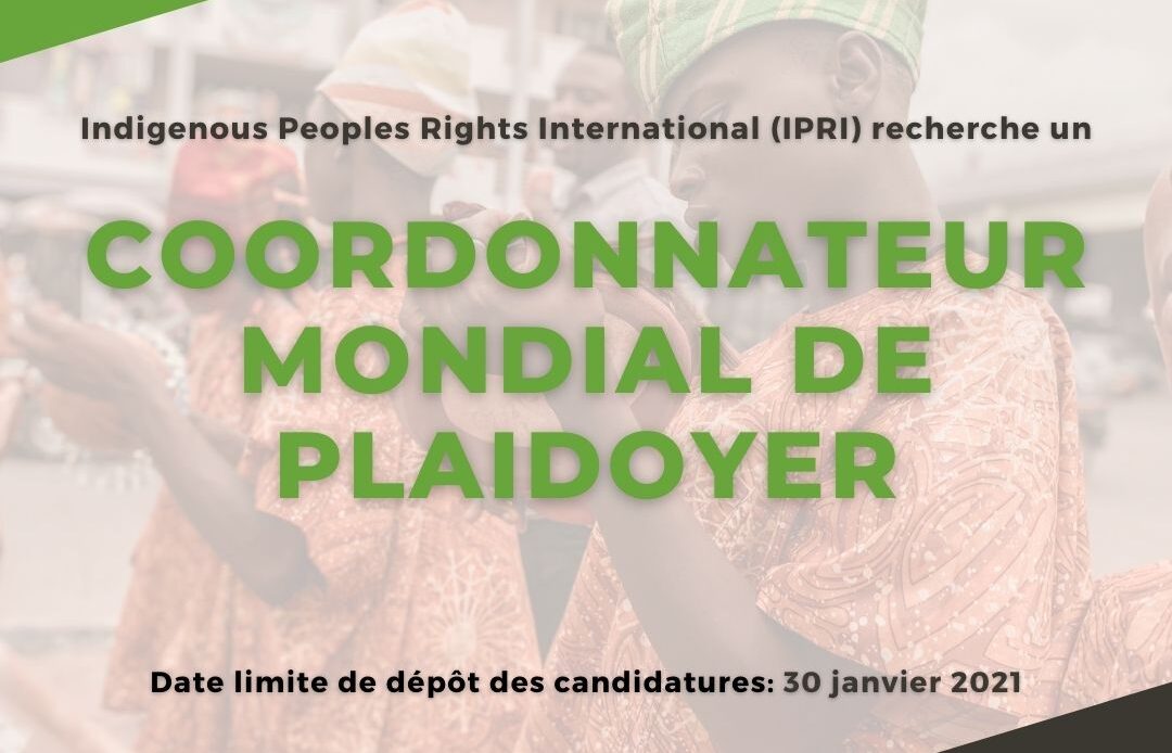 Indigenous Peoples Rights International (IPRI) recherche un Coordonnateur Mondial de Plaidoyer qui dirigera la réalisation des objectifs de plaidoyer de l’organisation dans le cadre du plan stratégique et devra: